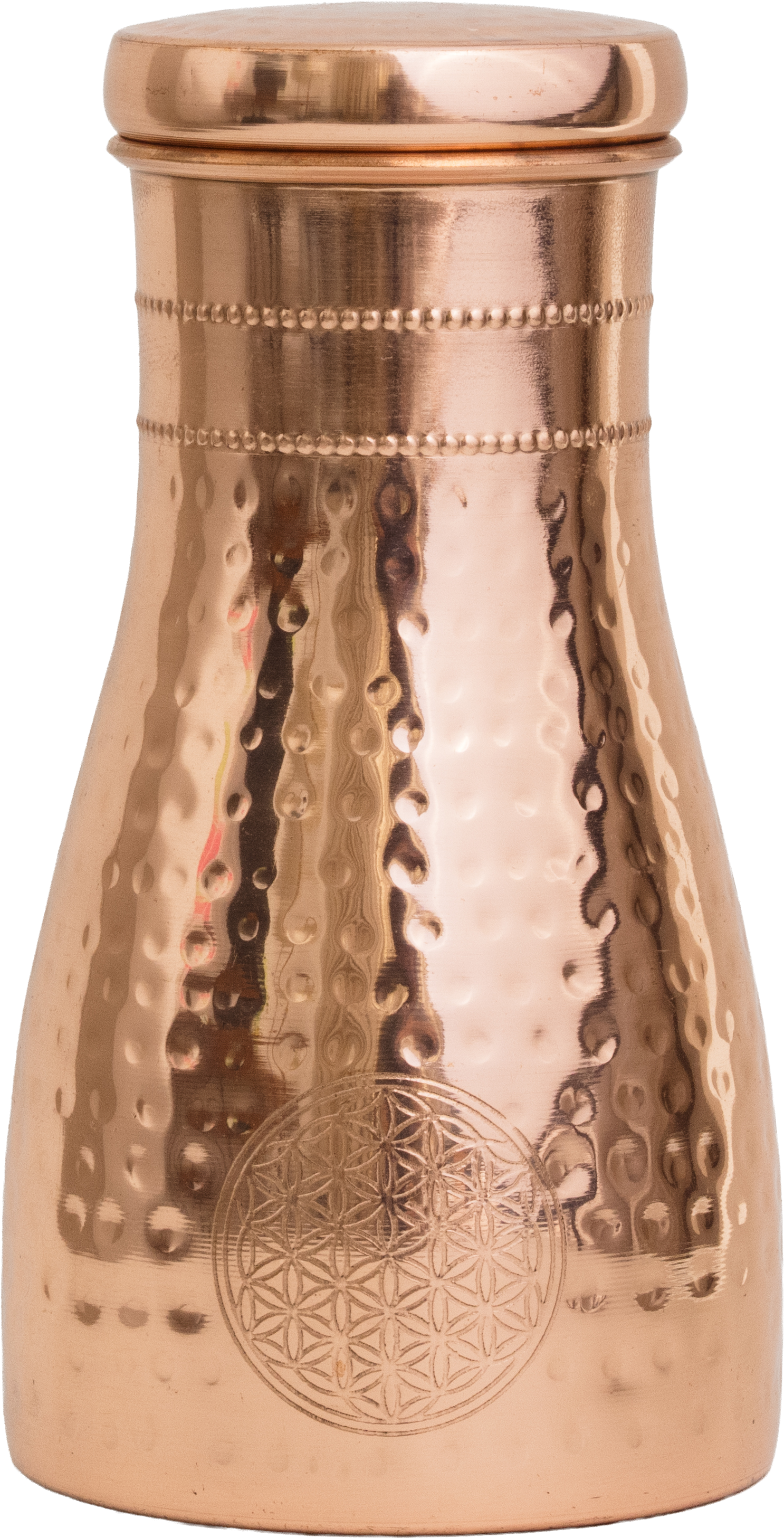 La brocca in rame martellato con il motivo del Fiore della Vita è stata studiata per trasformare ogni bicchiere d'acqua in un gesto di consapevolezza. Il coperchio a chiusura lasca è pratico per versare l'acqua in modo rapido e semplice. Tutto ciò la rende perfetta per uno stile di vita ayurvedico.