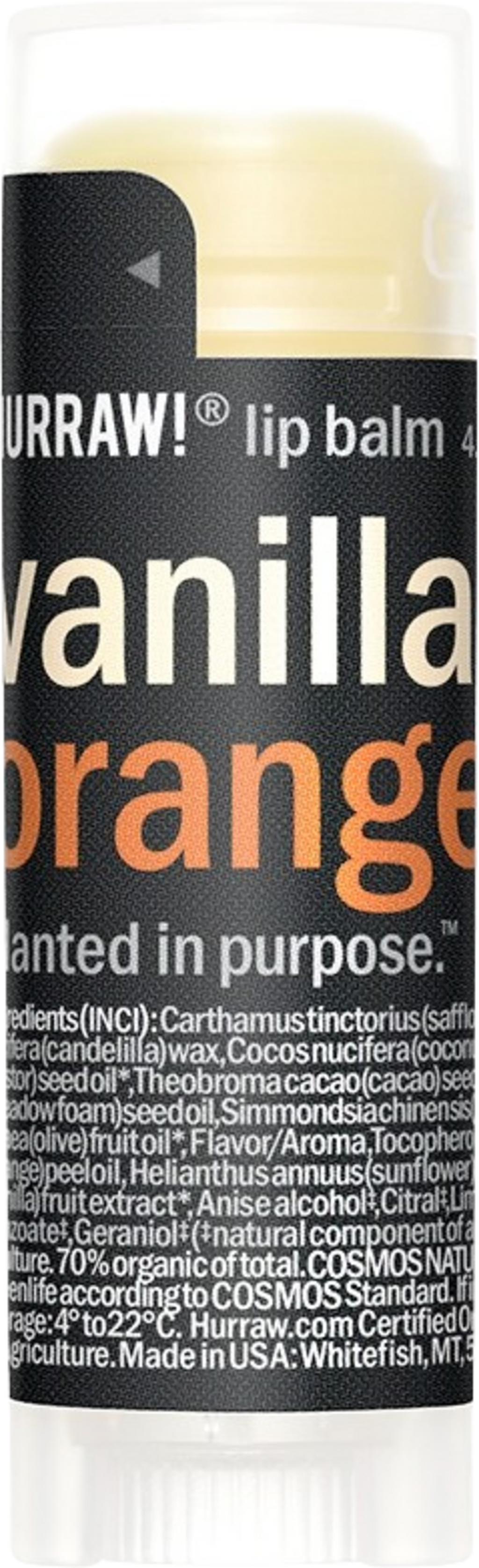 HURRAW! Vanilla & Orange Lip Balm, 4,80 g